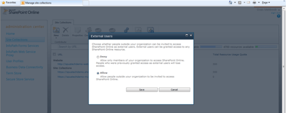 Following are some steps that outline how to enable External user features and add external users with contributors’ rights for particular page or item.
