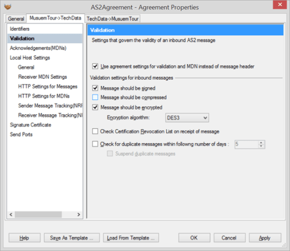 Now you have to enable the encryption and sign options on the Validation tab of the Agreement window.